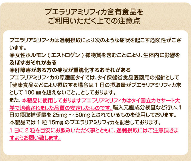| 名称 | プエラリアミリフィカ含有食品 |