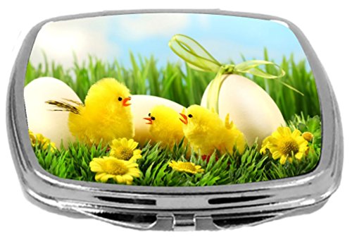 Rikki Knight Compact Mirror, Easter Chicks In Tall Grass