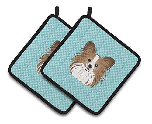 Caroline's Treasures Checkerboard Blue Papillon Pair of Pot Holders BB1186PTHD, 7.5HX7.5W, Multicolor