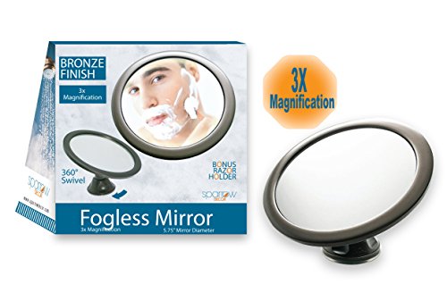 Fogless Fog free Shower Mirror with Rotating, Locking Suction Cup sticks to wet shower walls; New unique Bronze Finish; Best Shave and Bonus Separate Razor Holder; (Bronze) (3X Magnification)