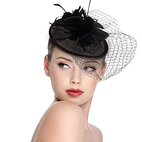 Binding : Apparel Product Description Dress yourself This fascinator hat is a aesthetic classic romantic style, it will be a beautiful hair accessories, flax feather mesh make you more graceful. Firmly fixed with clip on your head and it will not feel heavily on your head. You can dress yourself at prom, tea party, wedding or any other special soiree which can make you get a lot of compliments.
