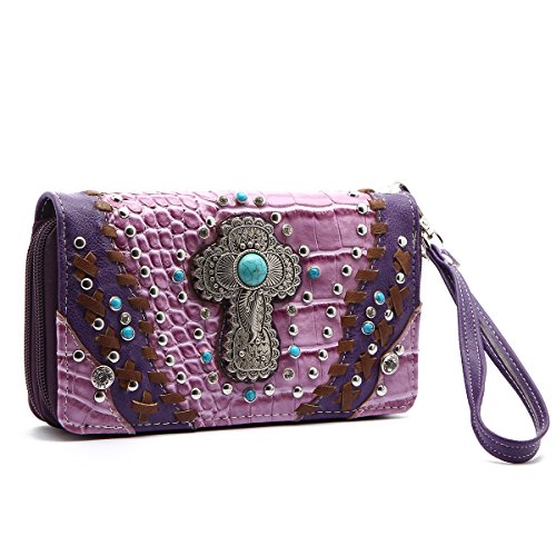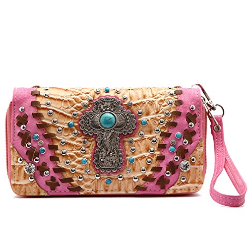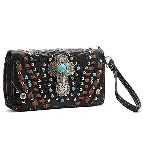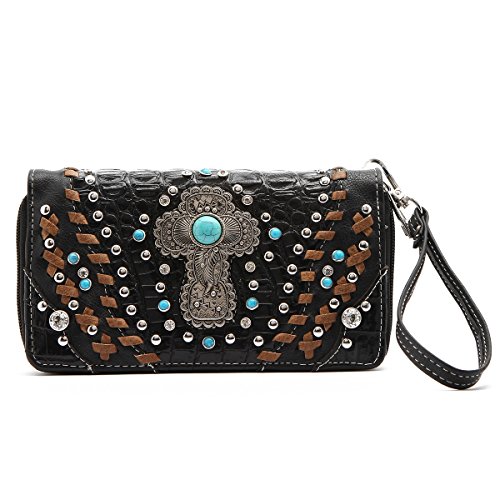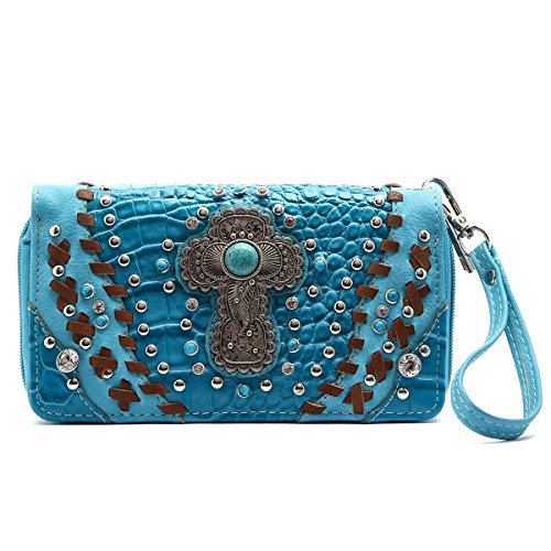 Western Wallet - Turquoise Stone Cross Embossed Wallet