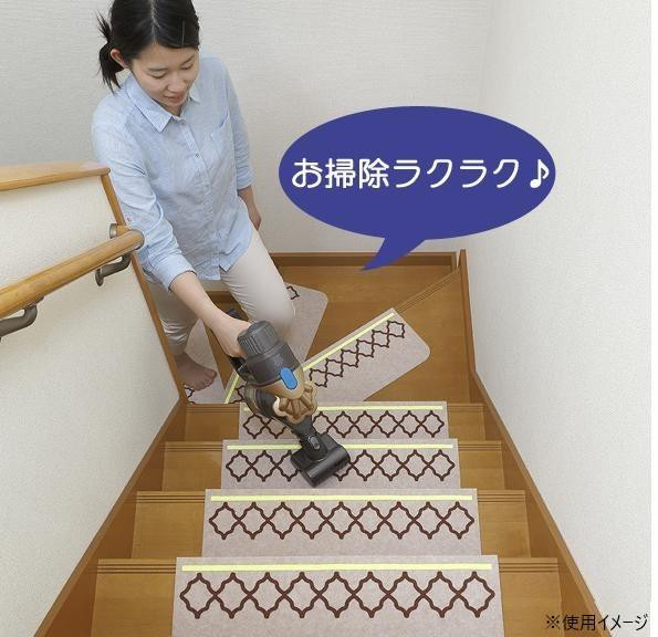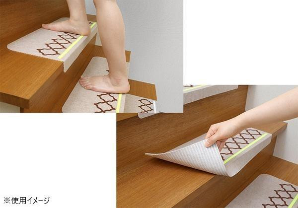 | おくだけでぴったり吸着し、ずれにくい階段マットです。階段の段差がよりはっきりと分かるように、蛍光染料でラインをつけています。掃除機をかけても吸いあがらず、楽にお掃除ができます。ハサミでカットでき、汚れたら洗濯機で丸洗いOK!!ペットの階段の昇り降りもしやすくなります♪ |