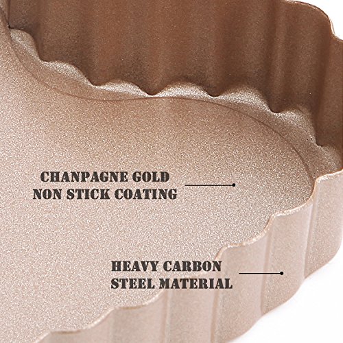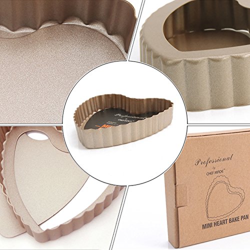 CHEFMADE 4Pcs Non-stick 4 Inch Heart Shape Quiche Pan with Removable Loose Bottom, FDA Approved, Oven Roasting Baking Mini Tart Pan (Champagne Gold)