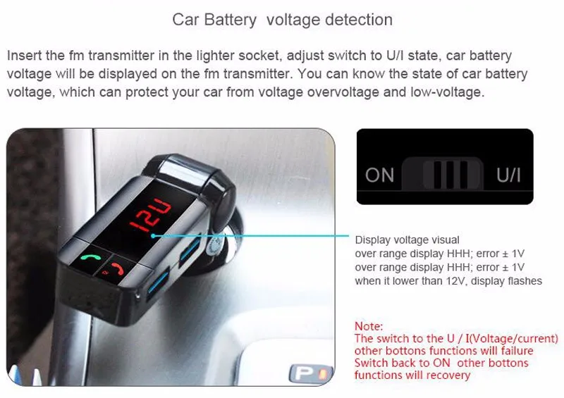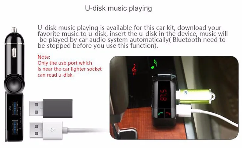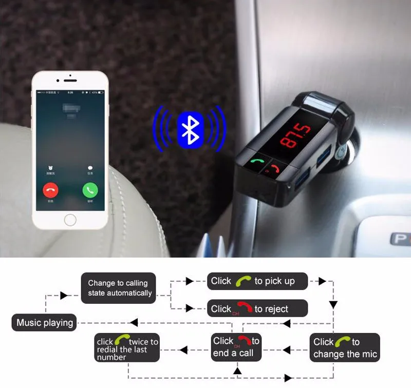 Function 2:bluetooth car charger with Handsfree Calling