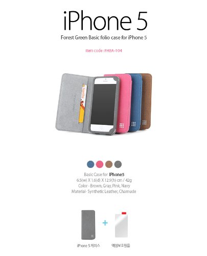 This Forest Green's basic wallet type case for Apple iPhone 5 is designed in Korea and carefully hand-made by very skillful korean artisans. It is made out of synthetic leather with Kolon chamude lining for ultra luxurious look, durability and best grip feeling. It has a pocket for credit card or your id card. The phone holding cradle will hold your iPhone 5 tight. This case will protect your Apple iPhone 5 inside out with ultimate styles. It is elegant, durable, practical and still stylish. Forest Green is one of the most trusted brand in Korea and famous for its stylish design and premium quality. See it, feel it and believe it!!