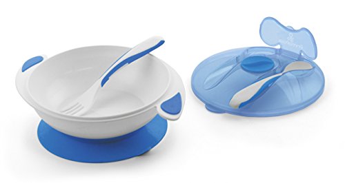 -. Feature : High Quality Material / Baby Suction Bowl with Lid / Utensils - Spoon / Fork / BPA-free / Set includes a stay put suction toddler bowl and a Mighty Grip fork and spoon set