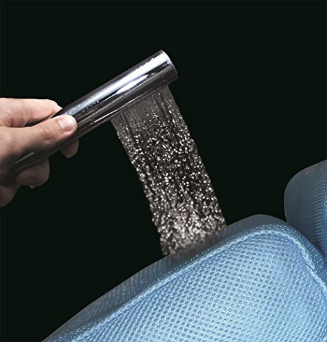 - EASY TO CLEAN. After your bath, you can simply wipe the pillow down to clean. The mesh material is anti-bacterial to prevent mold and mildew from forming, and allows water flow and air circulation so the material dries in no time at all.