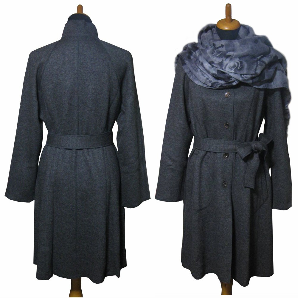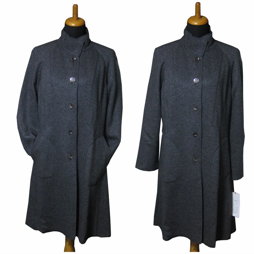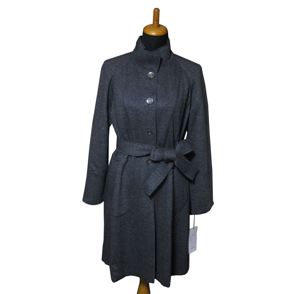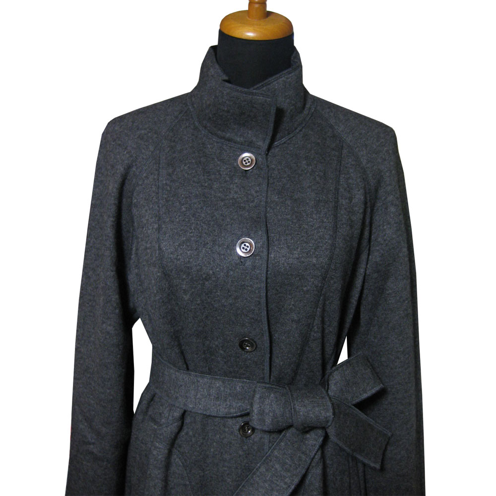 シルクウール 配色ニット素材のロングコート <40#42#/グレー>