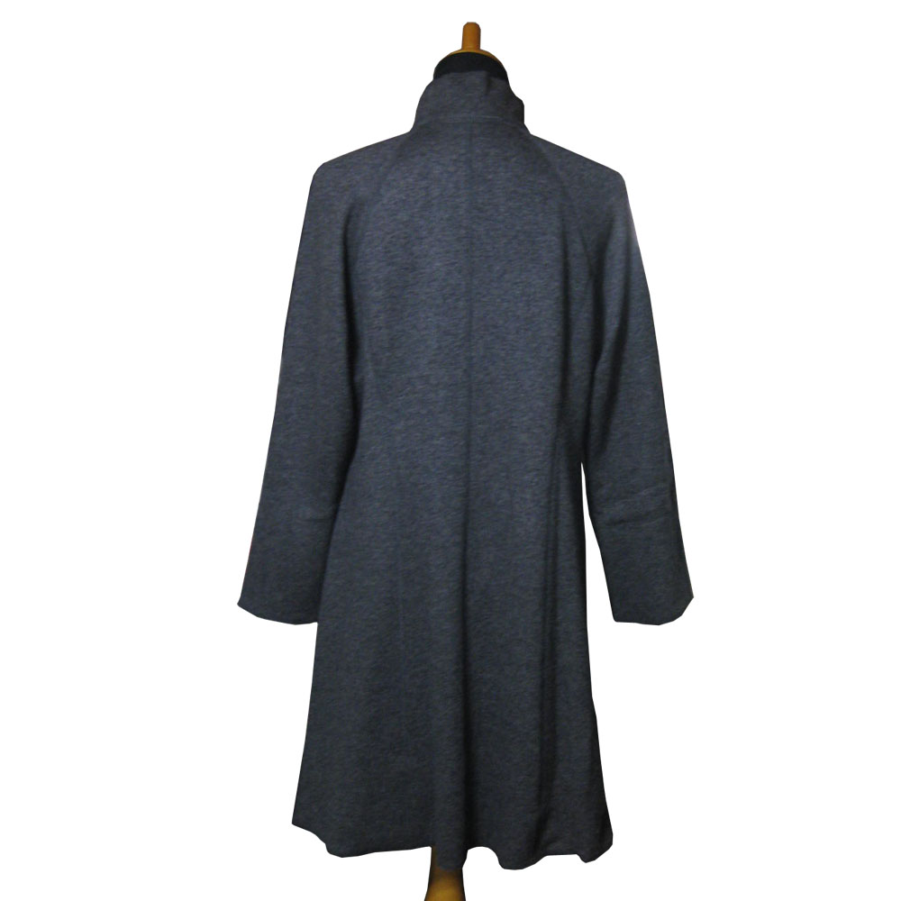 表側と裏側の色が異なる配色ニット素材の一枚仕立のコートです。