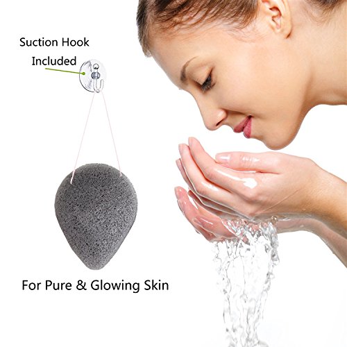 Konjac Natural Face Sponge – Bamboo Charcoal Konjac Sponges, Safe For Sensitive Skin Set of 2 Pcs