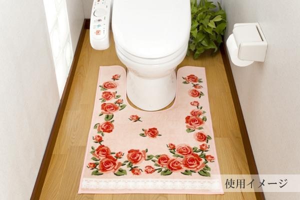 | 綺麗なバラと清楚なレースのプリントを施したエレガントなトイレカバーです。サイド横の奥まで長いサイズで、裏面に滑りにくい加工を施しているので、横ズレしにくいです!! |