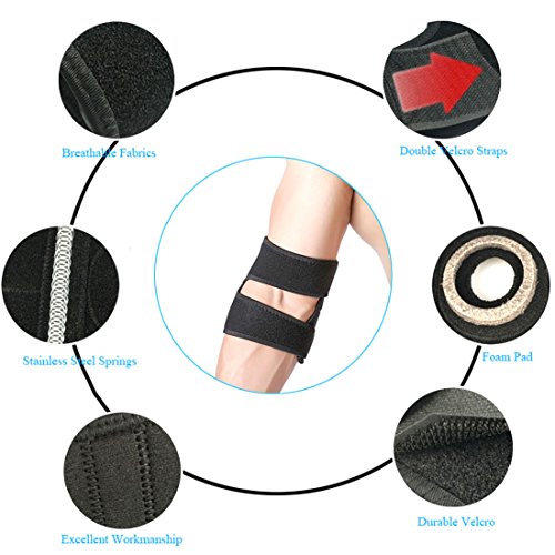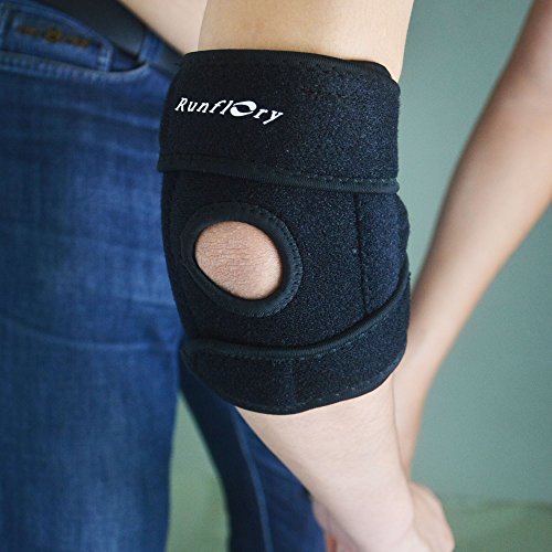 Runflory Adjustable Elbow Support Brace, Breathable Sports Tennis Elbow Brace Stabilizer, Compression Tendonitis Protector Guard Pad for Golfers, Outdoor Activities, Elbow Injury or Recovery (Black)
