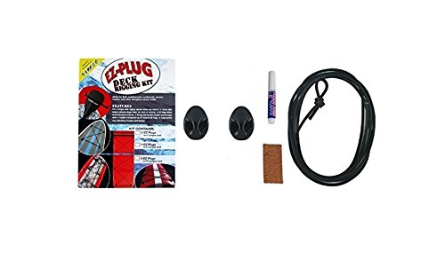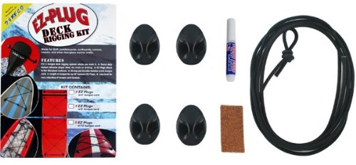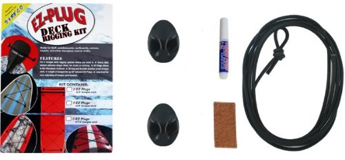 Studio : Surfco Publisher : Surfco Product Description Made for SUP, paddleboards, surfboards, canoes, kayaks, and other fiberglass marine crafts. The EZ-Plug Deck Rigging Kit helps you put a bungee deck rigging system where you want it. The kit includes EZ Plugs, super glue, bungee cord, and instructions. Loop knot the end for easy adjusting of bungee cord tension. Attaches to flat fiberglass surfaces. NO TOOLS OR DRILLING. 0