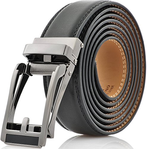 -. Feature : LINXX BUCKLE - Is the new INNOVATIVE EFFORTLESS SOLUTION. Just lift the buckle and pull to obtain a smooth and inaudible release! Extremely easy to use! Slide in belt to tighten and the belt auto locks - simple smooth and sleek. / NO MORE HOLES - Marino's Fashion Ratchet Belt provides 38 unique adjustments for a superb comfortable fit. Easy removable buckle allows you to cut the belt to your ideal size to give a primmer and custom tailored appearance! / MAXIMUM DURABILITY - Leather strap is a bit wider than 11/8" presenting the perfect look of a fine, genuine leather quality belt, complemented with an HIGHLY FASHIONABLE stylish, buckle that is elegantly designed with class. Scratch resistant buckles made to last. / GIFT BOX - Make a big impression! Enclosed in a lovely, attractive gift box. Special bonus leather key chain included! / ORDER WITH GRACE - 100% satisfaction guaranteed, 45 days free exchange and returns, plus 180 days warranty.