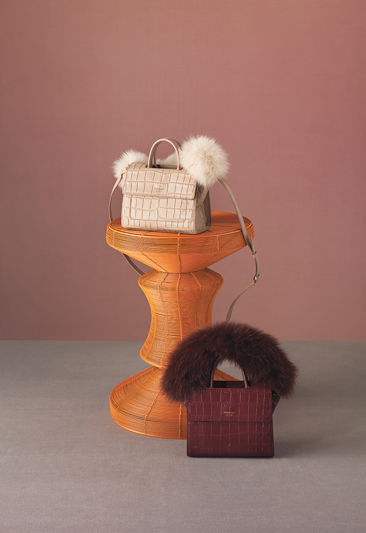 -양가죽에 크로커 무늬를 찍은 가죽을 사용하여 특별함을 자아냈으며 롱 스트랩과 함께 구성된 폭스 퍼 스트랩으로 계절감이 느껴지는 트렌디한 연출이 가능한 아이템입니다.
