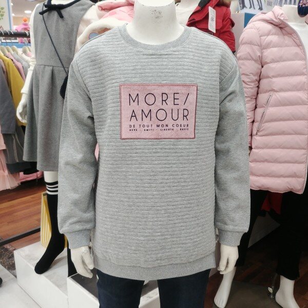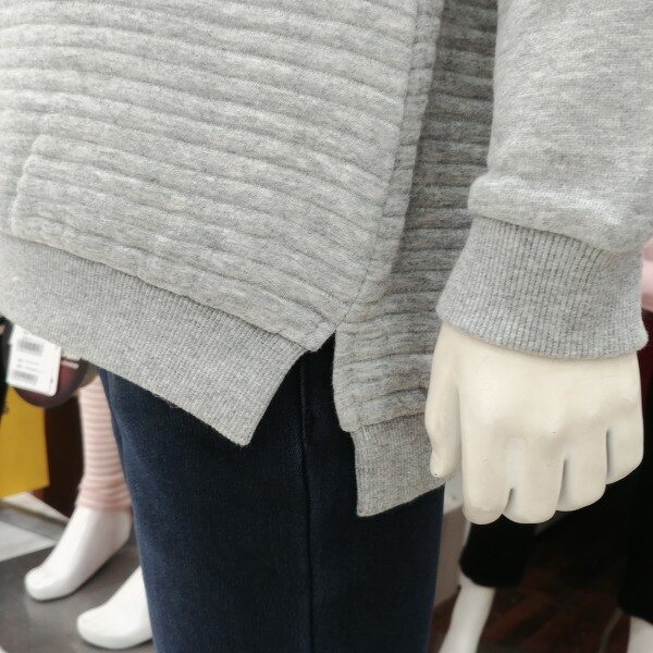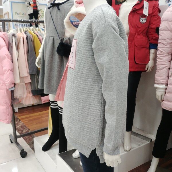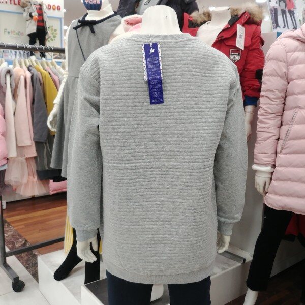 누빔 느낌이 나는 살짝 길이감이 있는 맨투맨 티셔츠입니다.기모가 얇게 깔려 있어 두꺼운 겨울 옷이 부담스러운 분들에게 좋습니다.여학생 전용입니다.