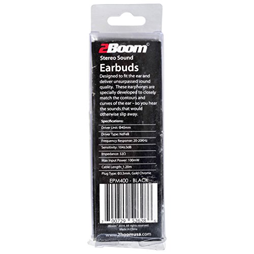 -. Binding : Electronics -. Brand : 2BOOM -. Color : Black -. EAN : 0700729526286 -. Feature : The 2Boom Professional Sound Earphone gives everyday functionality with professional level sound. Artists and casual users alike will thrill to its high audio fidelity. Compatible with Apple, Android & Windows devices. / The Tangle Free, 120cm flat wire keeps these headphones neat and accessible. / In-line remote microphone makes taking calls a breeze while the volume control ensures easy hands free operation. / Ergonomic engineering fits easily and comfortably in the ear for hours of enjoyable use. / Box Includes: 2Boom Professional Sound Headphone, instruction manual and warranty registration card. -. Label : MiGear -. Manufacturer : MiGear -. PackageQuantity : 1 -. ProductGroup : Speakers -. ProductTypeName : HEADPHONES -. Publisher : MiGear -. Studio : MiGear -. Title : 2BOOM Stereo Sound Earbud Black -. UPC : 700729526286