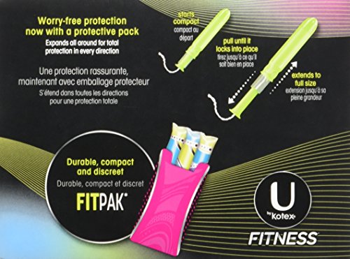 Bodies in motion need comfortable period protection. U by Kotex Fitness Tampons with FITPAK case transform into full coverage protection with regular absorbency. The FITPAK case is a durable, compact and discreet case to help you protect your protection wherever you stash your tampons. Designed to keep your tampons ready for use, the FITPAK case fits three compact tampons. Small in size but big in protection, each tampon features a smooth tip for easy insertion with all-around full coverage. Simply slide the applicator up to create a full tampon before inserting. These regular absorbency tampons hold 6-9 grams of fluid. U by Kotex feminine care products are individually wrapped, unscented, latex-free and lotion-free. Buying your U by Kotex period protection online is a convenient way to stock up without standing in line. Shop the complete fitness line of tampons, pads and liners with Amazon Subscribe and Save for up to 15 percent off and free shipping. Explore this page for additional product features. 0 |