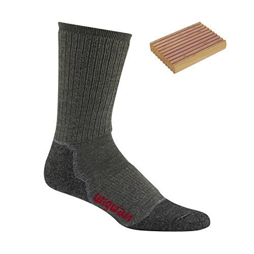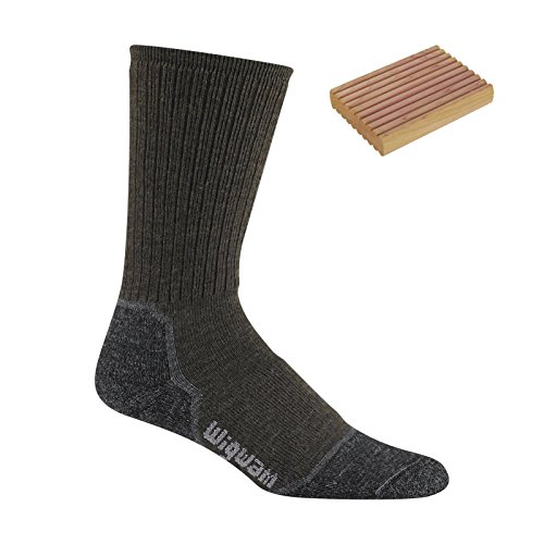 The Wigwam Merino Lite Hiker Sock is made with softmerino wool, resisting odor and insulating, without shrinking or itching.Includes Cedar Block with purchaseCedar is a natural pest and odor deterrentMidweight cushioned leg and soleSeamless toe closureElasticized archWool, the natural temperature regulator, keeps feet warm in winter and cool in summerFeature