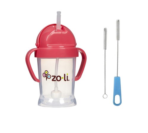 -. Title : Zoli Bot Straw Sippy Cup with Sippy Cup Cleaner - Pink