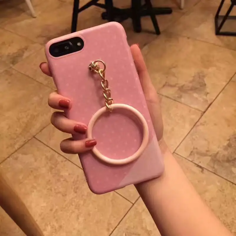 Korea Fresh Fashion  Ring Pendant Tassel Case for IPhone 7 7plus 6 6s 6plus Wave point Case Back Cover Free Shipping