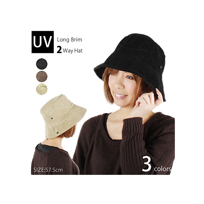 원본상품명: つば 帽子 レディス UVカット HAT-037 ハット コデュロイ つば 2WAY 無地 シンプル ブラック ブラウン 茶 ベジュ 春 夏 秋 冬 かわいい