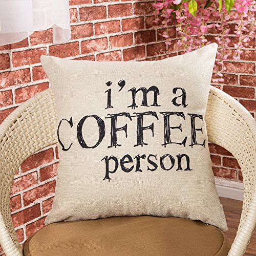 Fjfz I Am a Coffee Person Motivational Inspirational Quote Cotton Linen Home Decorative Throw Pillow Case Cushion Cover with Words for Coffee Lover Sofa Couch, 18" x 18"