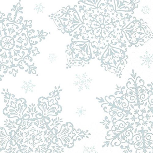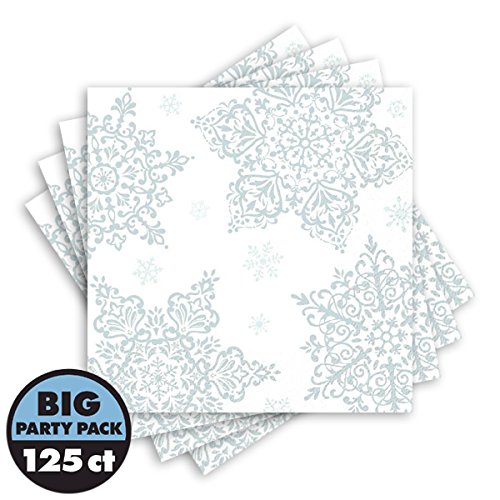 Amscan Shining Season Beverage Napkins (125 Piece), 5" x 5", Silver/White