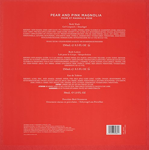 Pear and pink magnolia full size bath gel, body lotion, mini edt with decoration.