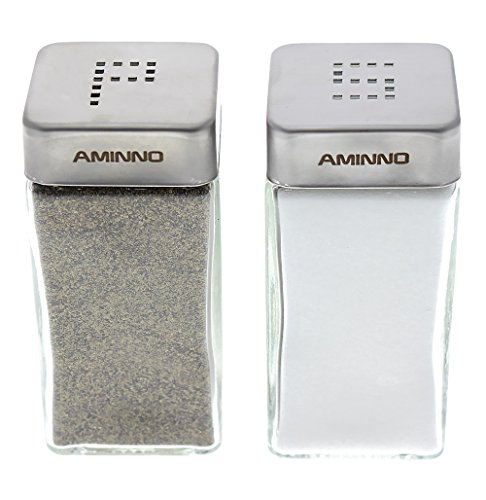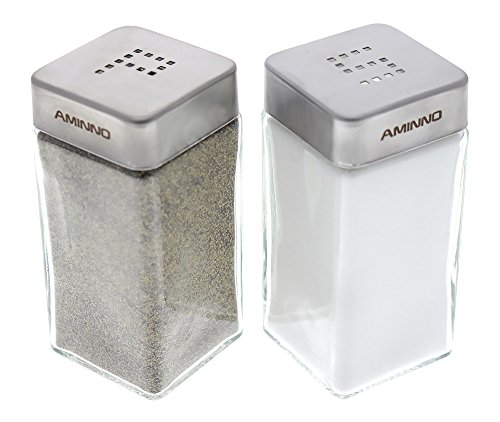 Set of 2 - High Grade Quality Glass Salt and Pepper Shakers - Stainless Steel Tops - 2 X 2 X 4 inches
