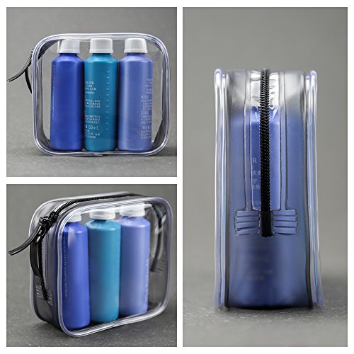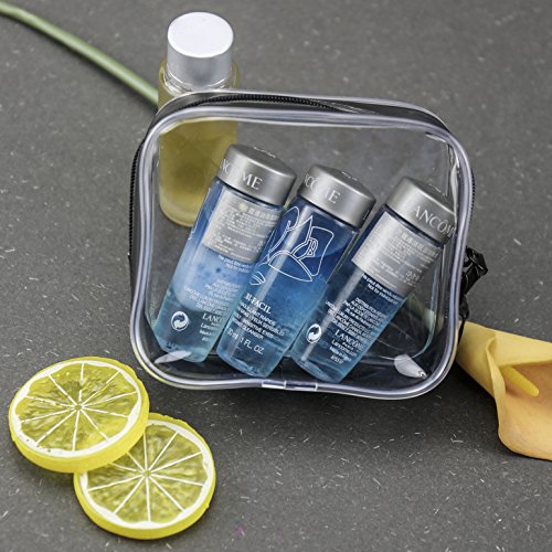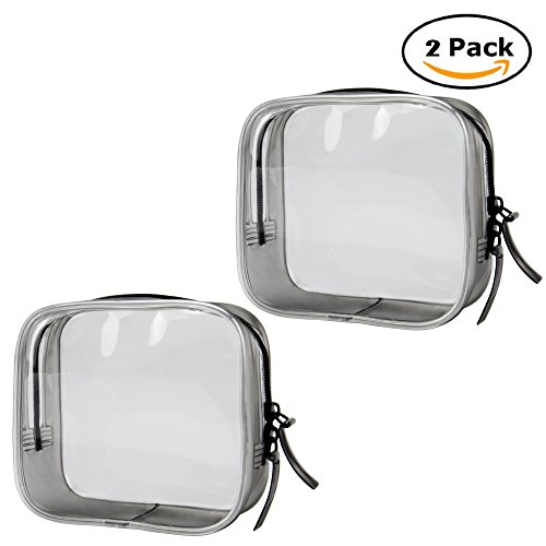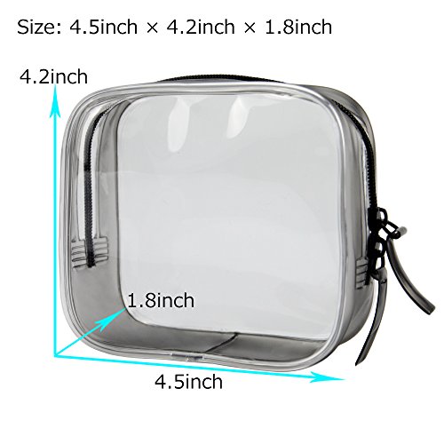 - Clear cosmetic bag size: 4.5"X1.8"X4.2". 2 Packs.TSA approved clear cosmetics makeup quart size bags makes traveling and passing through domestic and international security quick and easy,Save Time!