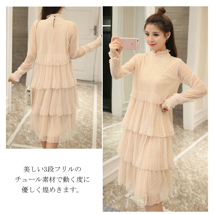 | 上品な3段チュール重ね、ボリューム感のある美シルエット。美しい3段フリルのチュール素材で動く度に優しく煌めきます。着心地も良くさらっとした素材なので通気性も◎清潔感のある色合いでどんなアイテムとも合わせやすいのでヘビロテ確実の一着♪結婚式や発表会のフォーマルシーンにもおすすめな華やかなルックスのワンピース! | |