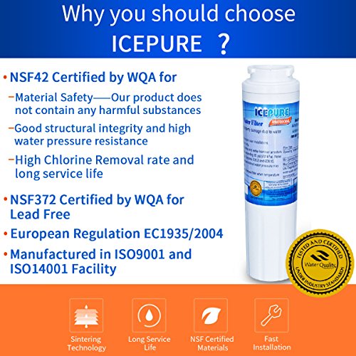 -. Feature : 3 PACK ICEPURE RFC0900A REFRIGERATOR WATER FILTER REPLACES ; KENMORE 469006; 46-9992; 46-9030 4396395 / MAYTAG UKF8001;UKF-8001P AMANA 12527304; UKF8001AXX; UKF9001AXX; UKF8001 / AQUA FRESH WF295 SWIFT GREEN SGF-M10 Specifications: The Activated Carbon Block Filter / Inside Has NSF 42 APPROVAL. The Quality of The Filter Is The Same As The Branded Filter. / Removes Chlorine; Taste And Odor Does Not Remove Beneficial Minerals. All Filters Are Certi