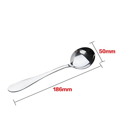 - ❤ EXTRA LONG HANDLE SPOON: 18.6cm(7.32in) for total length, not just for soups, but also cereal, stew, chili, ravioli, and desserts, excellent choice of flatware for home, restaurant or bar! The perfect ergonomics handle of the spoon makes a comfortable handling.