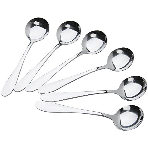 - ❤ EASY CARE: The soup spoons are sturdy and convenient for use. Dishwasher-safe without harsh detergents, will not rust or blemish for a long time.
