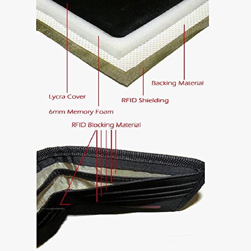 -. Feature : Introducing the WORLD'S FIRST RFID blocking wallet made of MEMORY FOAM. Available only on Amazon. / NO MORE BULKY FEEL - It's super soft and pliable material conforms to the shape of your pocket. So comfortable, you will hardly feel or notice it. / PEACE OF MIND FROM IDENTITY THEFT - ALL the slots, pockets and compartments are individually shielded with RFID technology material for total protection. / VERY FUNCTIONAL WITH LOTS OF SPACE - 6 card slots, 2 side pockets and 2 money compartments to store all your money and credit cards. / SUPER DURABLE AND WASHABLE - Never worry about getting wet, dirty or damaged. Even if rolled over by a truck, it will always return to it's original shape. Just machine wash and air dry. And it will be like new again. Try that with your RFID leather wallet.
