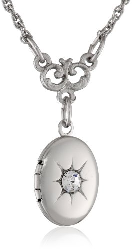 A petite silver-toned oval locket necklace with a starburst etched on the outer edges of the Czech crystal for that extra sparkle and shine. Presented on a Downton Abbey-themed card.Feature