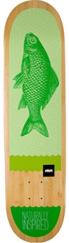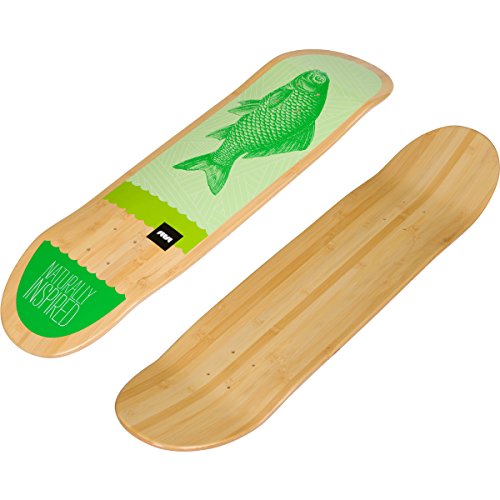-. Binding : Sports -. Brand : Bamboo -. Feature : Bamboo skateboard decks are made from the highest quality bamboo resulting in longer lasting durability and performance / Built with 6 ply bamboo and maple wood which improves the board sustainability to become an ideal deck for any skill level / Affordable pro skateboard deck with a unique green fish design and heavy duty build so riders can get the most pop while skating in style / Deep concave deck for premium control while riding, doing tricks, and taking hard turns that most decks can not handle / Comes in multiple sizes for all levels 7.75" x 31.5", 8" x 31.75", and 8.25" x 32" -. Label : Bamboo Skateboards -. Manufacturer : Bamboo Skateboards -. Model : 1-01-025-03-05-parent -. ProductGroup : Sports -. ProductTypeName : OUTDOOR_RECREATION_PRODUCT -. Publisher : Bamboo Skateboards -. Studio : Bamboo Skateboards -. Title : Bamboo Skateboards Green Fish Graphic Skateboard Deck with a 6 Ply Bamboo and Maple Hybrid Build