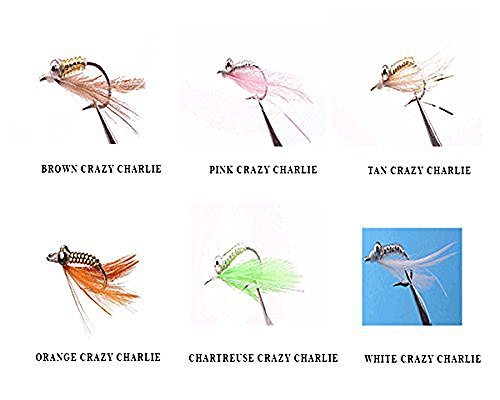 -. Feature : 6 Select Bonefish Flies / Innovative and professionally tied flies / Crazy Charlie's in these colors: / Brown, Pink, Tan, Orange, Chartreuse, White