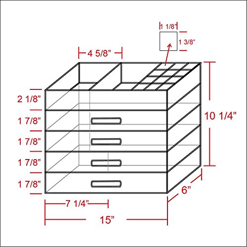 Made 100% Acrylic material. Made in Taiwan. Accessories not included. 5th layer : 1 compartment 14 3/8"x 5 1/2" x 1 1/4"H