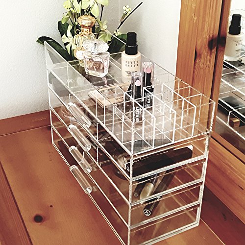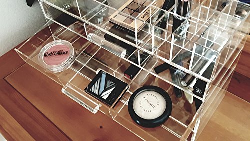 Can be used for storing cosmetics, jewelry, accessories, cotton pads, q-tips, and many more,5 layers inner dimension. Top layer: 2 compartments 5 5/8"Wx 5" and 16 compartments for lipstick or brush( 1 1/8" x 1 3/8").compartments for lipstick or brush( 1 1/8" x 1 3/8").
