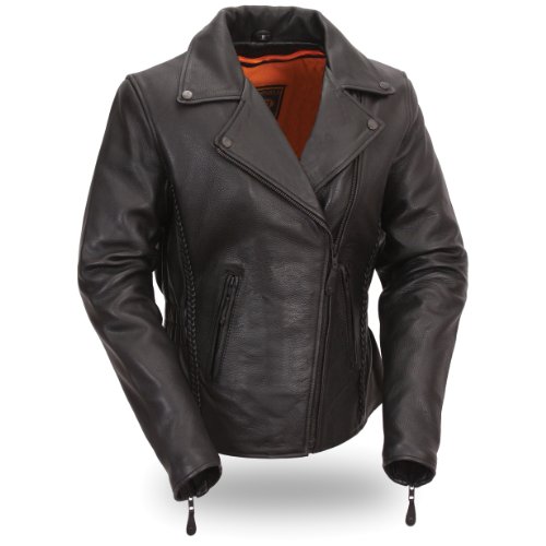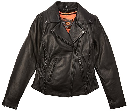 Studio : First Manufacturing Publisher : First Manufacturing Binding : Automotive Product Description Women's First Classic Blacked Out Hourglass M / C Jacket delivers classic style with form-accentuating design! Designed to accentuate your shape for a sassy look, in genuine, top-grade leather! Rule the road without freezing your "fanny"... a removable thermal liner keeps th heat. Snap-down shirt collar, hidden zippers and in-seam pockets for clean style; Side zippers at bottom for comfortable riding posture; Two outside pockets and one inside pocket for storage; Two sleeves and two pocket vents with heavy mesh inner liner for full ventilation; Zip-out, full-sleeve, high performance insulated thermal liner for extra warmth. Removable liner uses heavy duty long lasting black polyester lining with custom First Classic Orange Mesh trimming and First Classic Orange label; Heavy snaps and original YKK zippers; non-rust, non-corroding.; State Size. Dynamite discounts on first-rate First Classic Jackets... order today! Women's First Classic Blacked OutHourglass M/C Jacket, Black 0
