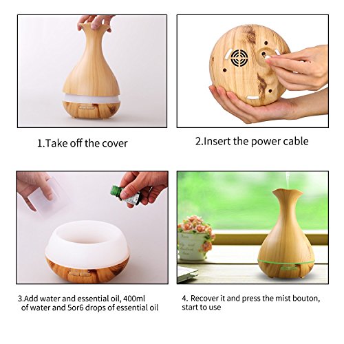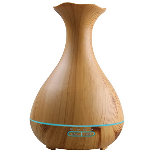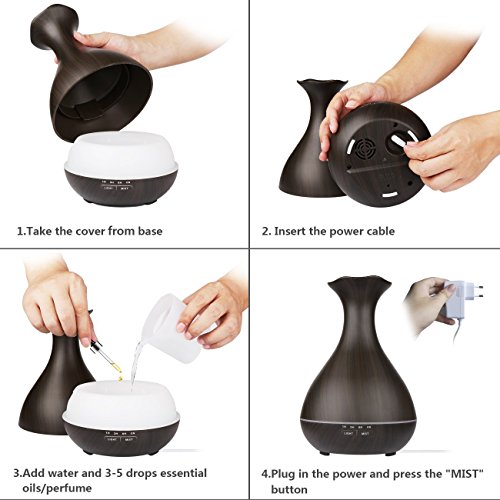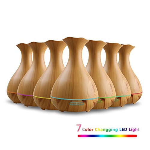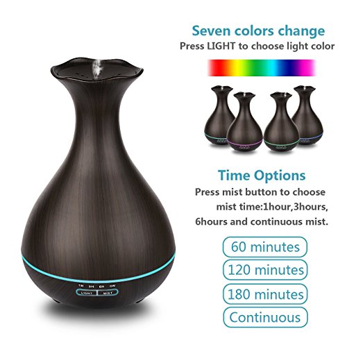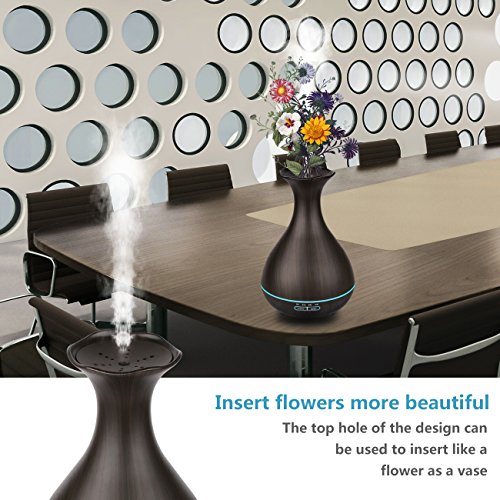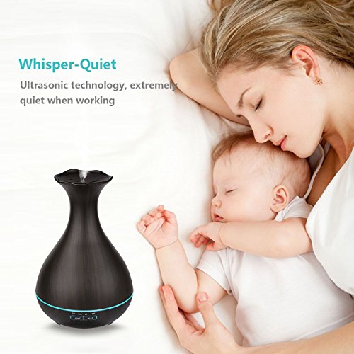 Tenswall Aroma Ol Diffuser mit 400ml, Ultraschall Technologie und Farb-LED in edler dunkler Holzmaserung als Luftbefeuchter, Duftzerstauber fur Yoga, Praxis, Schlafzimmer, Kinderzi