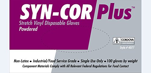 Cordova Safety Products 4077L Syn-Cor Plus Stretch Vinyl Powdered Disposable Gloves, Large