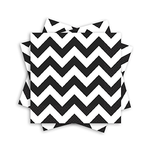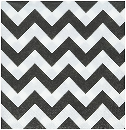 Amscan Disposable Lunch Paper Napkins in Chevron Print (16 Piece), 6.5" x 6.5", Black/White