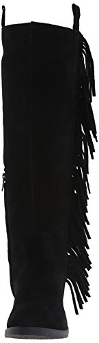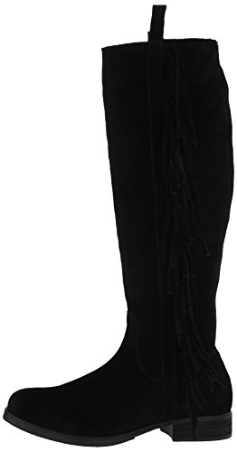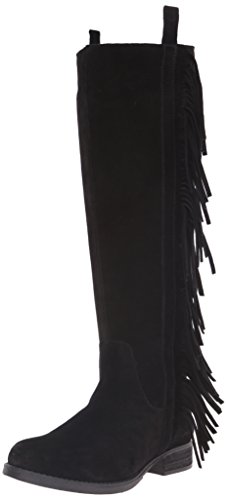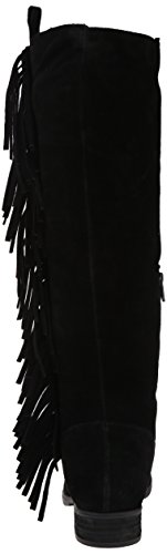 Product DescriptionFringe trim gives these suede Steven boots a bohemian look. Side zip. Stacked heel and synthetic sole.0
