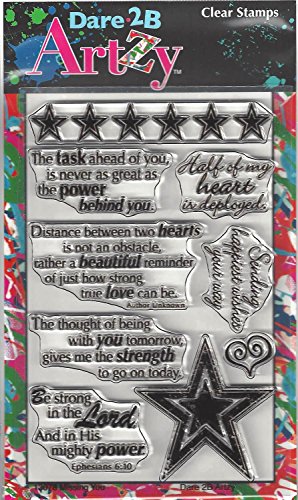 -. Feature : Missing You (13078) clear cling stamp set by Dare 2B Artzy / This set contains 9 separate clear stamps. Great sentiments with encouraging words. Send a card to our men and women in the military with this patriotic stamp set / The stamps measure from 1/4" to 3 1/2" / Proudly made in the USA!