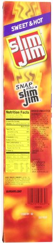 Slim Jim Giant Smoked Meat Sticks, Sweet & Hot, 0.97 Oz. (Pack of 24)