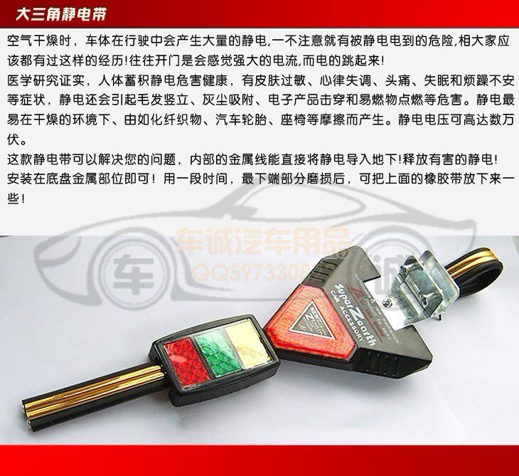 1, composed of 2 structural conductive rubber and metal, the static human release of softening treatment, can effectively remove the static electricity in the car, and durable.
